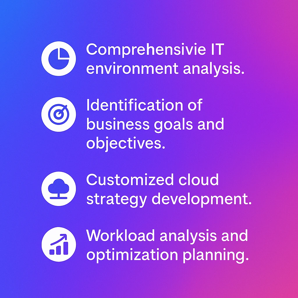 Before diving into implementation, we conduct a thorough assessment of your current IT environment and business goals. This allows us to develop a customized cloud infrastructure strategy that aligns with your specific needs and objectives. This strategic approach involves identifying potential bottlenecks, security risks, and areas for optimization. We consider factors such as workload requirements, data residency regulations, and security policies to ensure a tailored solution.